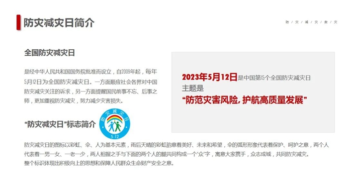 在第15个“5·12全国防灾减灾日”到来之际,开云网页版界面·开云(中国)按照党中央、国务院、北京市委市政府部署的工作要求,以“防范灾害风险,护航高质量发展”为主题,深入开展防灾减灾宣传,以增强全系统干部职工安全忧患意识,提高防灾减灾及应对能力。