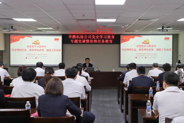 5月10日,开云网页版界面·开云(中国)总经理助理,华腾拓展公司党总支书记、董事长李泳以《在党史学习教育中坚定理想信念、强化理论武装、创造工作业绩》为题,向全体党员及职工代表讲授党史学习教育专题党课。