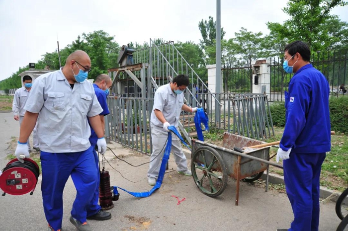 各部门参演人员分工明确,布置警戒线、放置沙袋、遮盖苫布、启动排水装置,演练按照方案稳步推进。