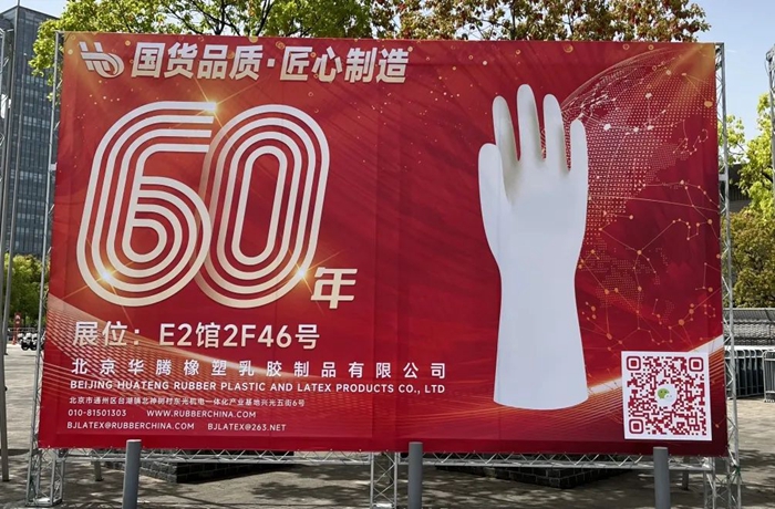4月13日至15日,2023年第104届中国劳动保护用品交易会在上海举行,华腾橡塑携丁腈手套、家用手套、绝缘手套、干箱手套等共计3个品牌41种展品参加交易会。